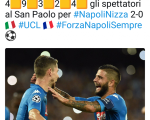 Attraverso l’account Twitter ufficiale, il Napoli ha diffuso i dati sugli spettatori presenti al match