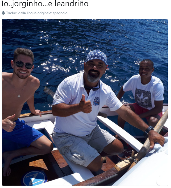 L’ex Bologna si è mostrato in barca durante un’escursione nel bel mezzo del Golfo di Napoli. Il baby brasiliano, invece, ha passato la sua mezza giornata con l’amico Jorginho, ieri decisivo col grande rigore.