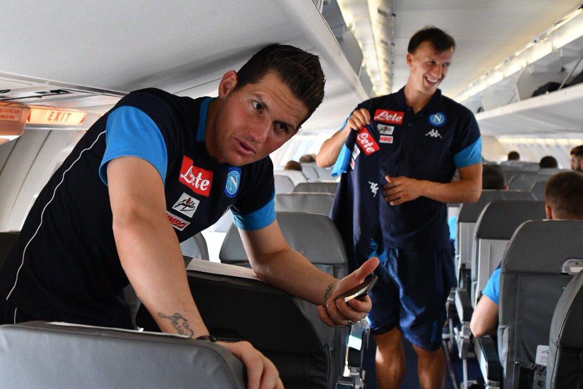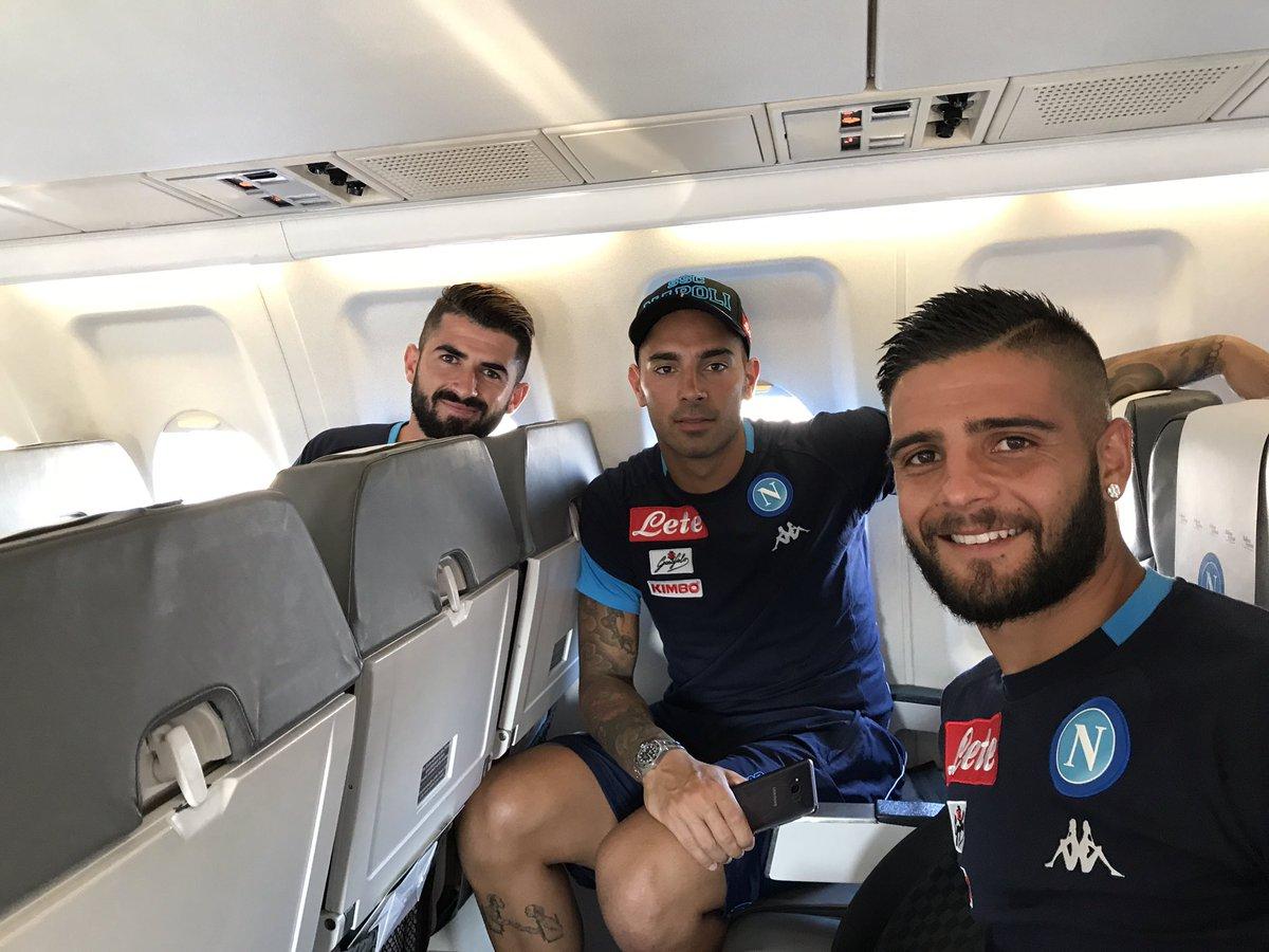 È in partenza il Napoli per Verona. I calciatori azzurri sono infatti appena saliti sull’aereo che li porterà nella città veneta per disputare la sfida di domani sera che segnerà l’esordio nel nuovo campionato di Serie A.