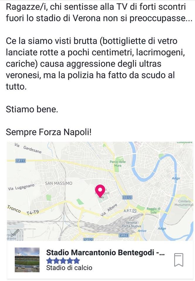 Sui social girano anche alcuni messaggi da parte dei tifosi azzurri che denunciano le suddette cariche.