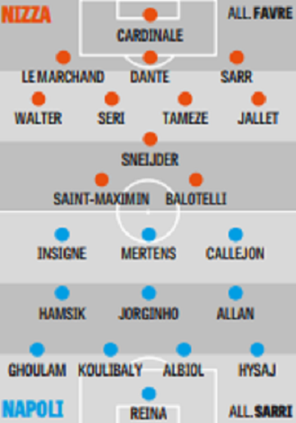 Nizza-Napoli si avvicina e, con essa, anche le prime speculazioni sulle formazioni che scenderanno in campo. In casa azzurra, il tecnico Maurizio Sarri dovrebbe avere già stampato in mente lo schieramento che, nella serata di domani, si giocherà l’accesso alla fase a gironi di Champions League con la compagine francese.
