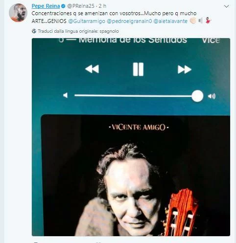 L’estremo difensore azzurro ha scelto la chitarra di Vicente Amigo per concentrarsi al massimo: “Concentraciones q se amenizan con vosotros…Mucho pero q mucho ARTE…GENIOS”, queste le parole postate dal numero uno partenopeo.