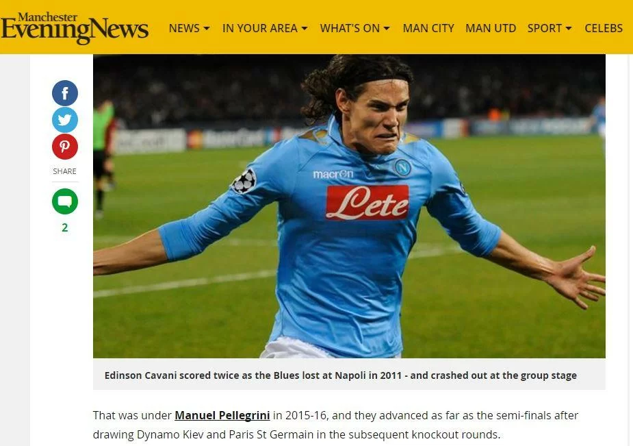 Il quotidiano della città inglese infatti esordisce con parole molto chiare. “The Blues’ biggest threat in Group F following the draw appears to be Napoli, who knocked them out in their first venture into the competition in 2011 .” (Il pericolo principale per i Blues in seguito ai sorteggi appare essere il Napoli, che li eliminò alla prima avventura nella competizione nel 2011). La gigantografia di Edinson Cavani all’interno dell’articolo poi, fa capire che, probabilmente, qualcuno ha ancora gli incubi per le saette del Matador. Ma il Manchester di oggi è molto diverso. L’allenatore non è più Pellegrini bensì Pep Guardiola. Una campagna acquisti monumentale che ha portato Mendy, Bernardo Silva e Danilo.