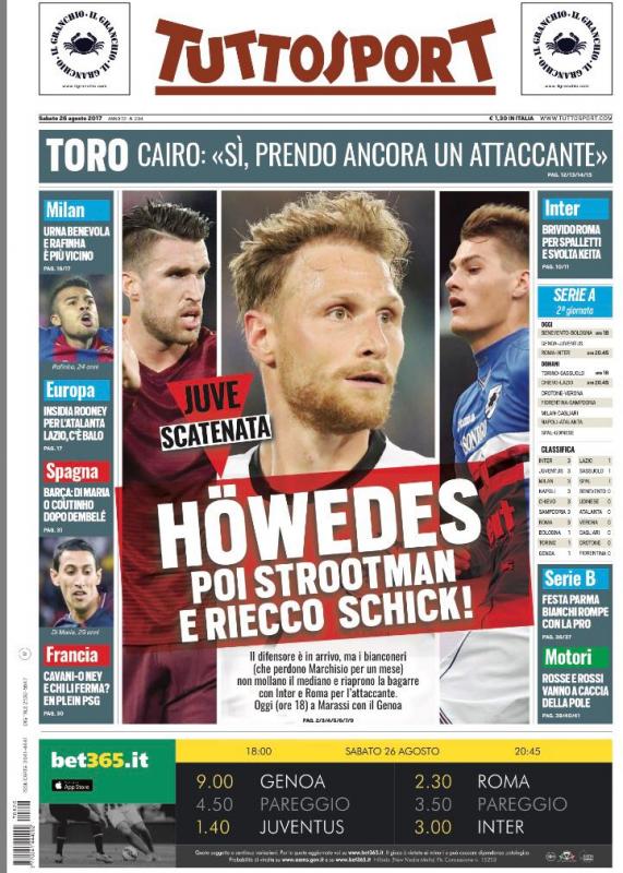 Ecco le prima pagine di alcuni quotidiani di oggi, 26 agosto. Non c’è molto spazio per il Napoli. E lì dove la squadra di Sarri è stata citata è per la questione Reina o per le parole di Guardiola.
