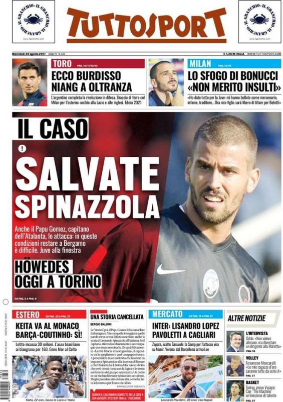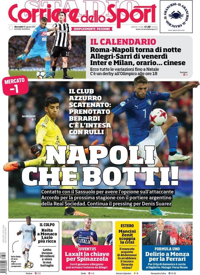 Zapata verso il Sassuolo e Pavoletti al Cagliari i riferimenti al Napoli di Tuttosport. Concentrato sui possibili colpi in entrata, invece, Il Corriere dello Sport, che titola “Napoli che botti”, esplicando poi i nomi di Berardi, Rulli e Denis Suarez.