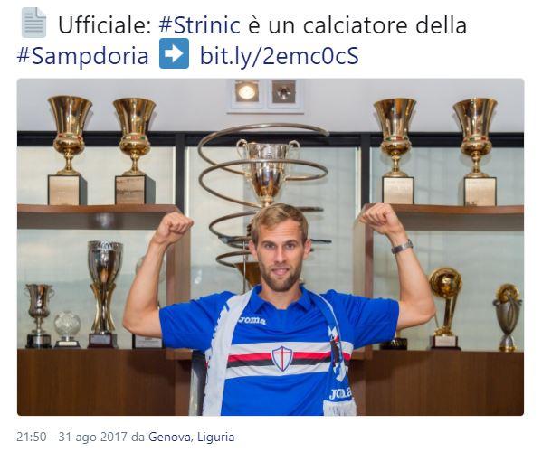 Anche Ivan Strinic lascia l’azzurro del Napoli. La sua cessione però, come conferma la società genovese, è a titolo definitivo. Al Napoli andrà una cifra complessiva che supererà i 20 milioni.