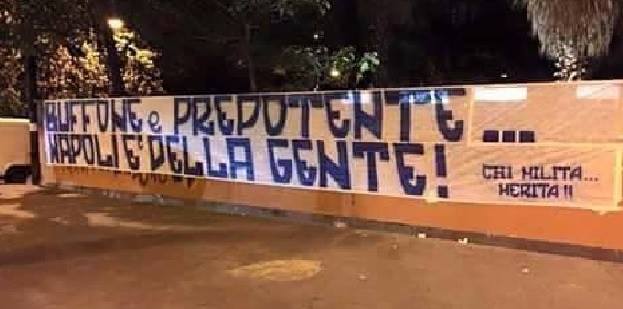 Di mira ovviamente è stato preso il presidente De Laurentiis a cui è stato dedicato uno striscione comparso in zona Museo Nazionale, che recita: “Buffone e prepotente… Napoli è della gente”. Lo stesso striscione era stato esposto anche altre volte in città in occasione dell’ultimo giorno di calciomercato.