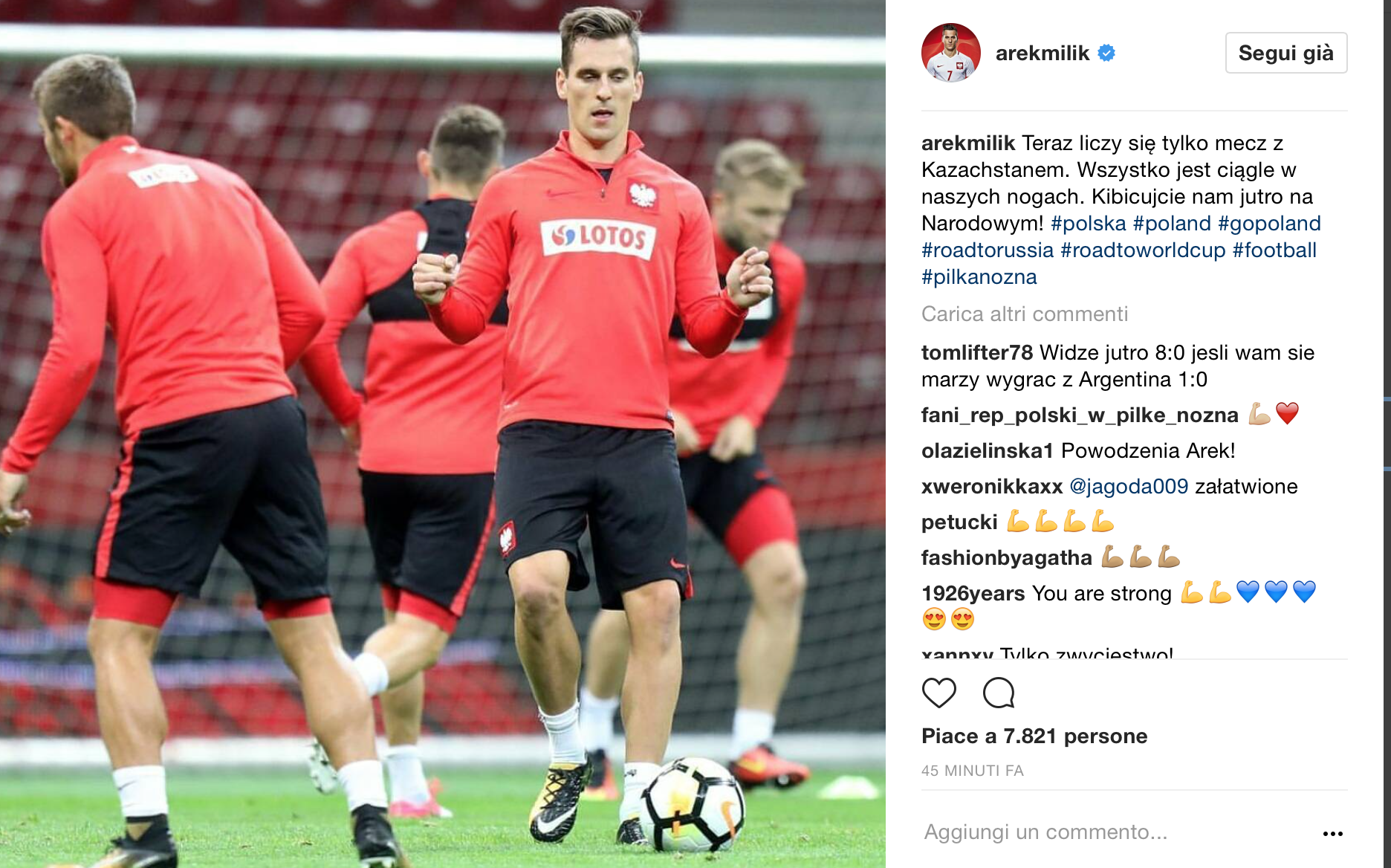 Tornato a giocare per la sua Polonia, dal ritiro della Nazionale manda forti segnali ai suoi tifosi, che chiama a raccolta. Su Instagram si legge, infatti: