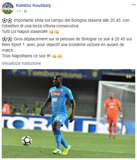 Il messaggio di carica è stato lanciato, un po’ per tutti, dal difensore azzurro Kalidou Koulibaly, il quale ha affidato a Facebook il proprio pensiero sulla sfida, con un chiaro obiettivo: vincere ed ottenere i tre punti.