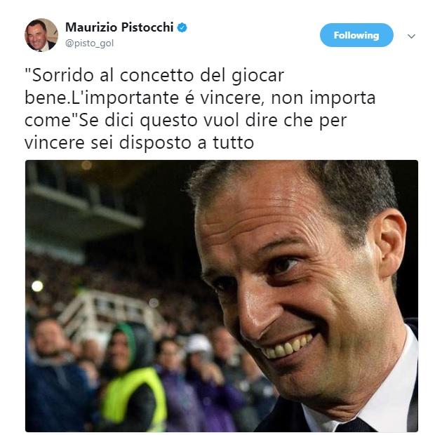 Un modo di vedere il calcio in maniera completamente differente e che spesso è motivo di polemiche. Maurizio Pistocchi ha infatti voluto rimarcare alcune frasi dette da Massimiliano Allegri, tecnico della Juventus, criticandolo aspramente.