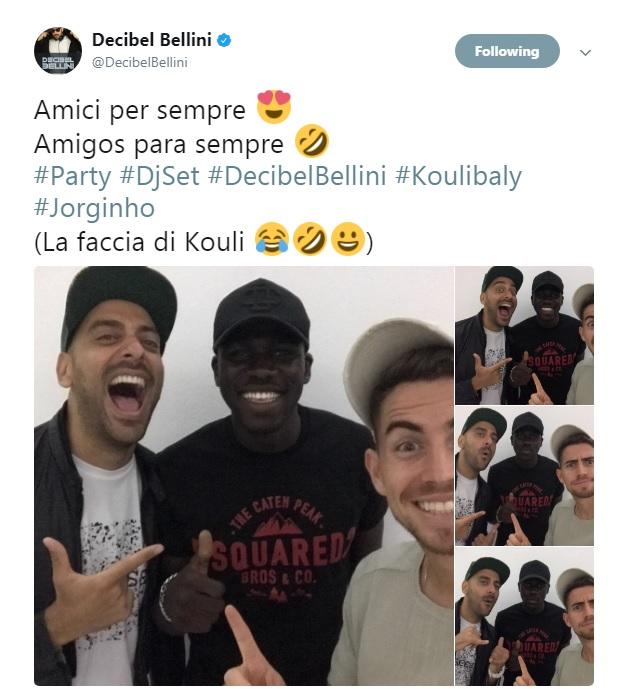 Tra questi ci sono anche Jorginho e Koulibaly. Tant’è che i tre si sono ritrovati oggi pomeriggio per un DjSet, così come ha mostrato con alcune foto pubblicato su Twitter dallo stesso speaker.