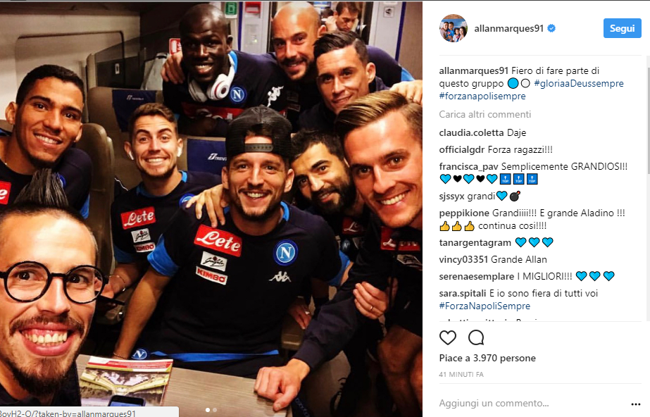 “Fiero di far pare di questo gruppo”. Parole al miele di Allan, che omaggia la squadra con un post pubblicato sul suo profilo Instagram dopo la vittoria con la Lazio.