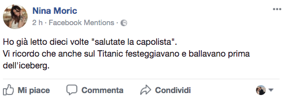 Vi ricordo che anche sul Titanic festeggiavano e ballavano prima dell’iceberg”.