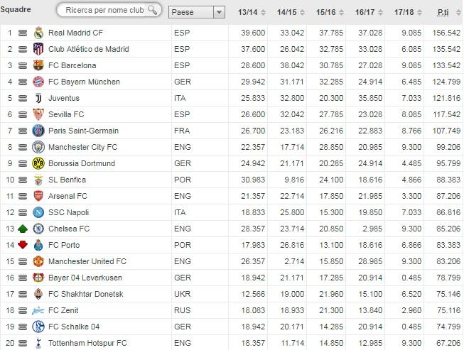 Per quanto riguarda il Napoli, resta invariata la posizione conquistata dai partenopei che si assestano al 12esimo posto del Ranking per club.