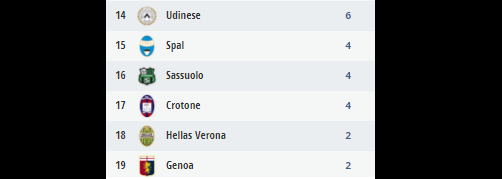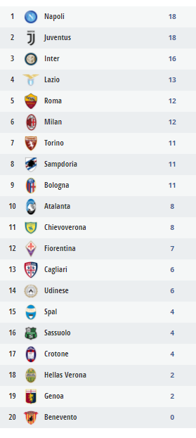 Ecco come si presenta al momento la classifica, in attesa delle tante partite di domani: