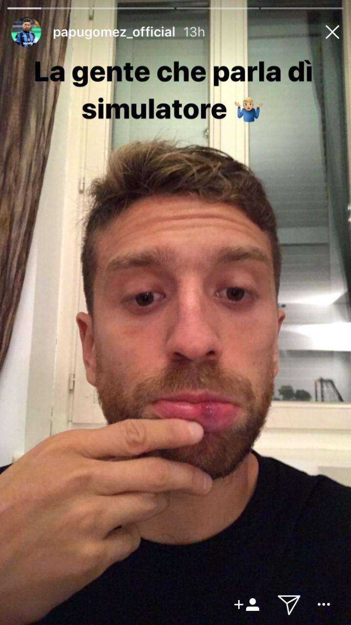 Per fugare ogni dubbio, l’attaccante dell’Atalanta, una volta tornato a casa, ha postato sulle Instagram Stories una foto con il labbro gonfio e la scritta: “La gente che parla di simulatore”.