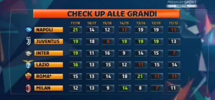 Di seguito il grafico realizzato dalla redazione di Premium Sport che mostra i punti raccolti dalle big di Serie A dopo le prime sette giornate di campionato degli ultimi anni:
