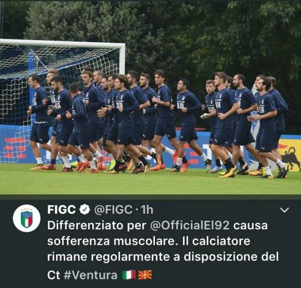 Secondo quanto riportato dalla profilo Twitter ufficiale della Nazionale, si ferma anche Stephan El Shaarawy. Dopo i vari infortuni di Verratti, De Rossi, Pellegrini e Belotti, Ventura dovrà fare a meno di un altro azzurro.