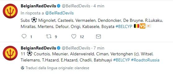 Questa la formazione del Belgio:
