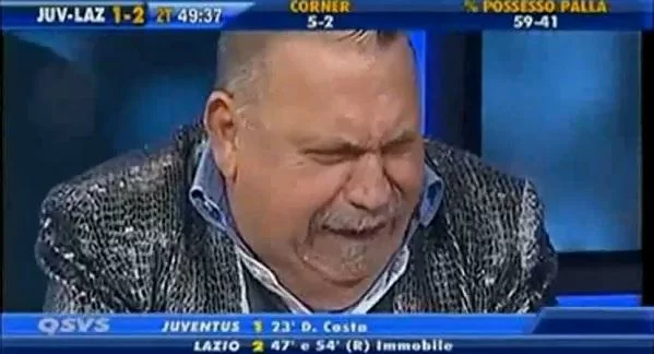 Davvero particolare la reazione dell’opinionista e tifoso juventino, Cesare Pompilio, che in diretta su Telelombardia ha pianto per la sconfitta della sua squadra. Poi ha provato a vendicarsi con l’avversario napoletano Mimmo Pesce che si preparava ad assistere a Roma-Napoli: “Ora mi diverto io con il Napoli!“. Immaginiamo non debba essersi divertito poi troppo…