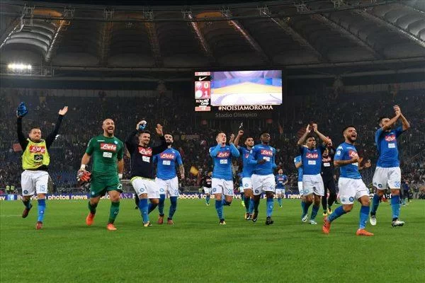 Grande festa e grande clima a Roma, dove il Napoli ha battuto i rivali giallorossi per 0-1.