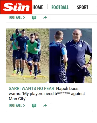 In Inghilterra difficilmente si esalta una squadra avversaria, ma la classe e la qualità del Napoli spingono il celebre tabloid Sun a parlare di un “Napoli senza paura”.