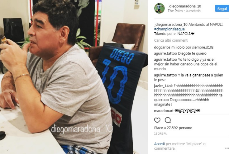 “Tifando per il Napoli”, ha commentato il campione argentino al post pubblicato su Instagram.