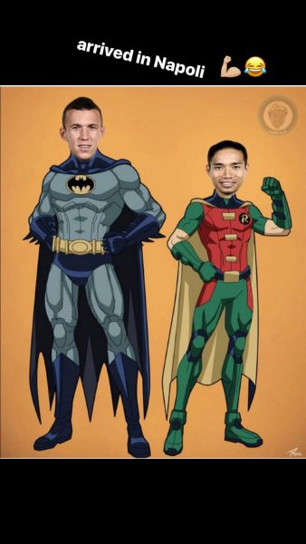 Ivan Perisic, probabilmente direttamente da una delle camere dell’albergo, ha postato un fotomontaggio ritraente lui e il compagno Nagatomo nei panni di particolari Batman e Robin.
