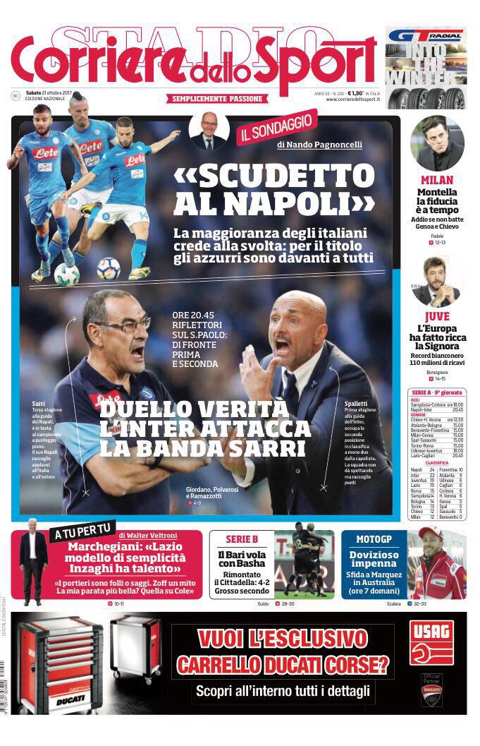 Si butta su un sondaggio, invece, il Corriere dello Sport: secondo le opinioni raccolte, “la maggioranza degli italiani crede alla svolta: per il titolo gli azzurri sono davanti a tutti”.
