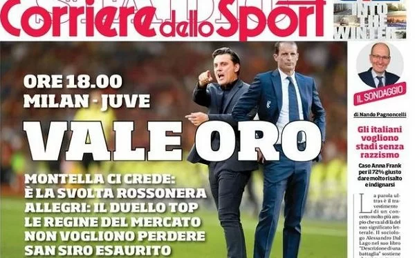 Le prime pagine sportive che troveremo tra poche ore in edicola si concentrano sul big match dell’undicesima giornata di campionato, ovvero l’anticipo Milan-Juventus che si giocherà alle ore 18 a San Siro.