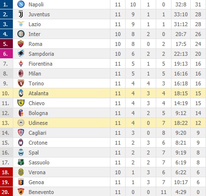 Si chiude l’undicesima giornata del campionato di A: il Torino nel posticipo ha battuto per 2-1 il Cagliari grazie ai goal di Iago Falque e Obi, che hanno ribaltato il vantaggio iniziale di Barella. I granata agganciano Fiorentina e Milan a quota sedici punti.