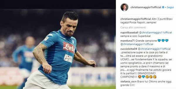Christian Maggio ha affidato la sua reazione dopo la vittoria sul Sassuolo al social Instagram: