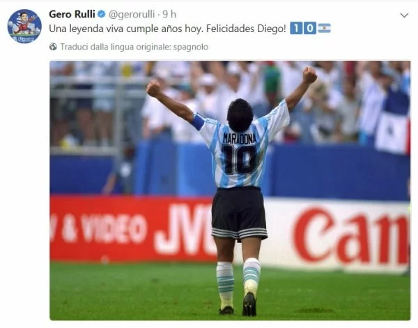 AUGURI MARADONA / Il portiere Gerònimo Rulli, a lungo seguito dal Napoli durante questa estate, ha voluto omaggiare con ammirazione il connazionale Maradona sul suo profilo Twitter.
