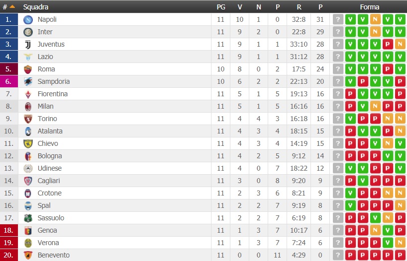 CLASSIFICA SERIE A / Si è appena concluso il posticipo tra Hellas Verona e Inter, che sancisce la chiusura dell’undicesima giornata di Serie A con i 3 punti che vanno ai nerazzurri, grazie al risultato di 1-2. La squadra di Spalletti resta dunque in scia del Napoli, riportandosi al secondo posto.