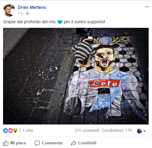 I più hanno notato il murales dedicatogli a Via Toledo nella giornata di ieri: lo stesso belga non ha nascosto la sua gratitudine per una dimostrazione d’affetto, l’ennesima, che ha colpito il suo cuore, così come testimoniato dal post pubblicato su Facebook per ringraziare dell’omaggio.