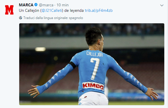 L’ex Real Madrid però è molto apprezzato anche in patria, con il portale online di Marca che parla di un “Callejon de leyenda”: titolo tutt’altro che a caso, visto che all’iberico manca un solo gol per diventare il più grande marcatore spagnolo della Serie A. In questo momento Calletì è a quota 51, appaiato con Luis Suarez.