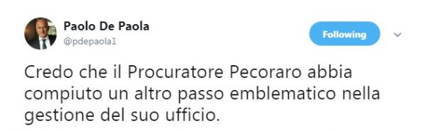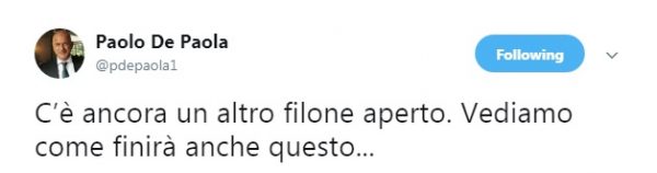 Il giornalista ha infatti pubblicato alcuni tweet alquanto emblematici che sembrerebbero far riferimento alla questione del Napoli: “Credo che il Procuratore Pecoraro abbia compiuto un altro passo emblematico nella gestione del suo ufficio“. E ancora: “C’è ancora un altro filone aperto. Vediamo come finirà anche questo…“. Il riferimento a questo secondo messaggio pare sia rivolto al filone che riguarda la Juventus e il presidente bianconero, Andrea Agnelli.