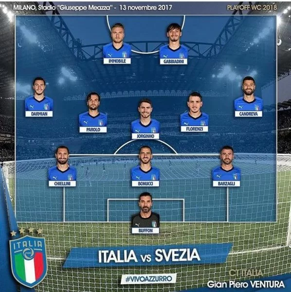 Da poco è stata resa nota la formazione dell’Italia che, tra un’ora circa, affronterà la Svezia nel ritorno dello spareggio per il mondiale in Russia nel 2018.