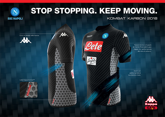 Il Napoli ha presentato la quarta divisa, la Kombat Karbon, con un video sul proprio canale Facebook: