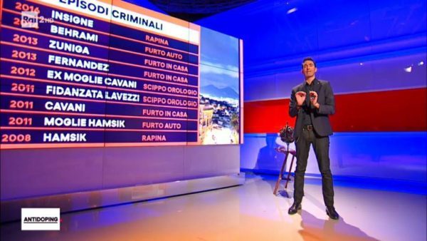 Tante polemiche ieri per la puntata di Antidoping andata in onda su Rai 2. Nel corso della trasmissione sono stati messi in risalto i collegamenti tra il Napoli Maradoniano e la malavita organizzata partenopea. Non solo: è stata addirittura stilata una tabella di tutti i furti ai danni dei calciatori del Napoli (o delle loro compagne) dal 2008 ad oggi.
