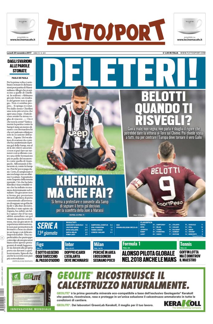 Duro Tuttosport con le torinesi: “Deleteri!“, si legge. Critica particolare per i due protagonisti in negativo: Khedira e Belotti.