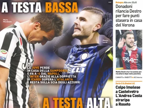 Il Corriere dello Sport esalta Icardi: “Ma quanto è forte?“, si chiede dopo la doppietta che è valsa la vittoria con l’Atalanta. Poi, un ammonimento alla Juve che è pure un invito: “Svegliati“.