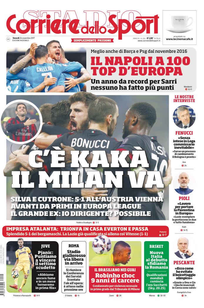 Il Corriere dello Sport, poi, esalta il Napoli: “Top d’Europa, meglio anche di Barcellona e Psg. Nessuno ha fatto più punti”.