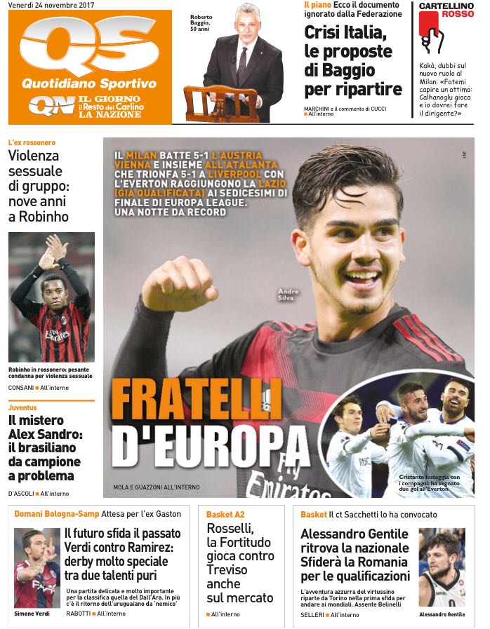 Sbirciamo le prime pagine di alcuni quotidiani sportivi in edicola domani. Spazio alle imprese europee delle italiane, come è giusto che sia, tutte qualificate al turno successivo in Europa League.