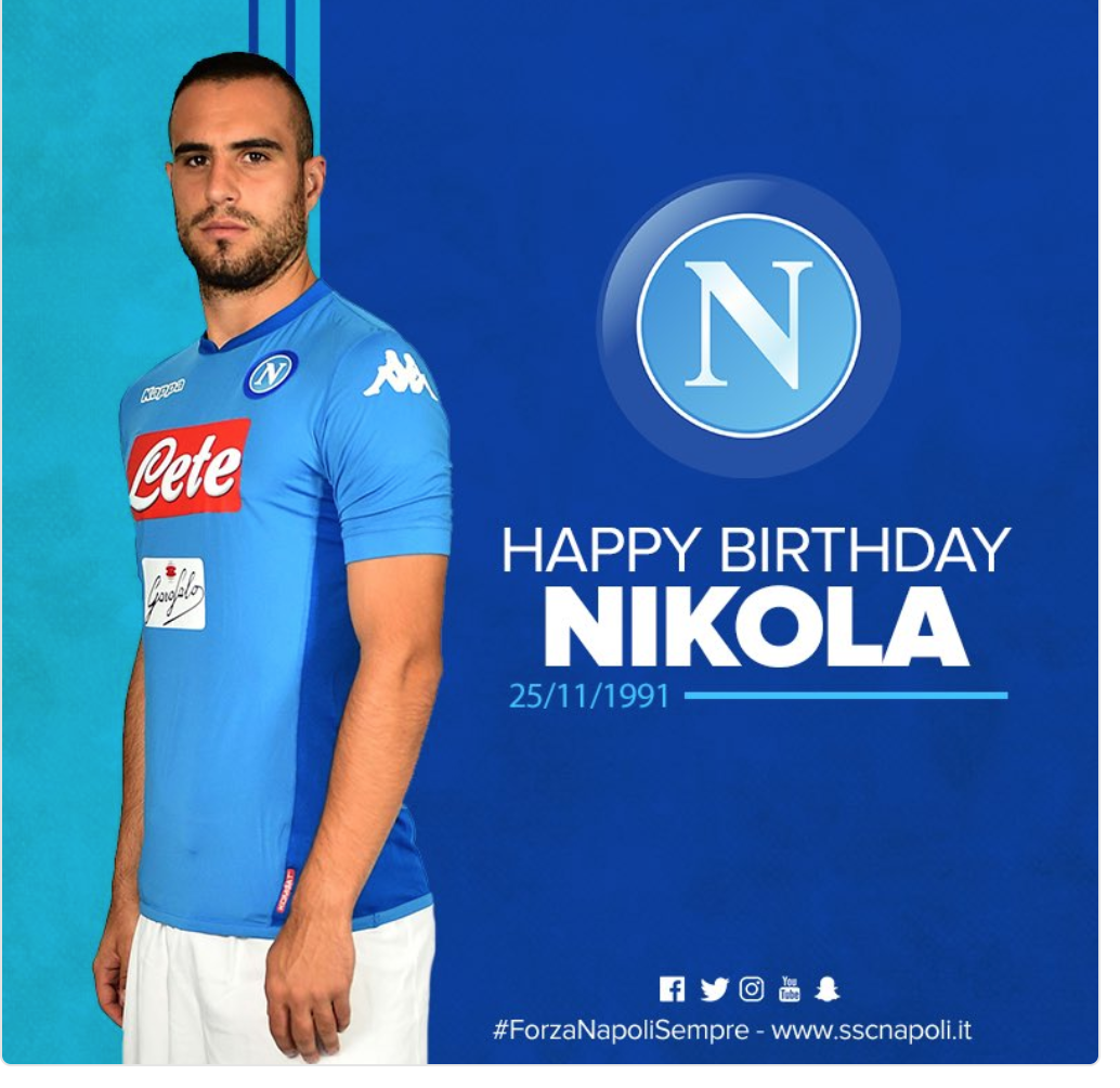 Il serbo compie 26 anni e la società non ha mancato di fargli gli auguri attraverso la tradizionale grafica postata sul proprio profilo Twitter con la frase “Happy birthday Nikola”.