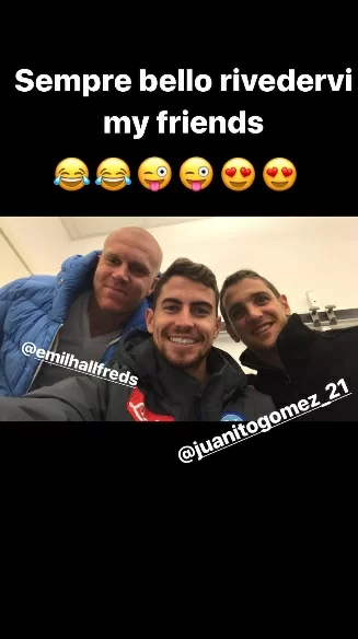 Non solo calcio per Jorginho ad Udine. Il centrocampista del Napoli ha avuto infatti modo di ritrovare e salutare due ex compagni ai tempi del Verona. Si tratta di Emil Halfredsson, centrocampista dell’Udinese, e Juanito Gomez, attaccante attualmente svincolato.