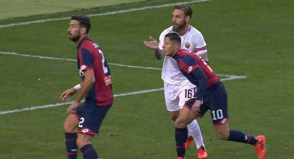 DE ROSSI Daniele (Roma): condotta gravemente antisportiva per avere, al 24° del secondo tempo, durante un’azione, con il pallone non a distanza di giuoco, colpito con uno schiaffo al volto un calciatore della squadra avversaria, senza procurargli danni fisici.