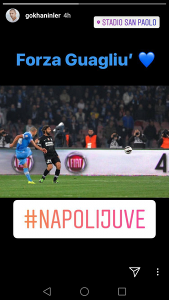 Gokhan Inler ha postato su Instagram un toccante messaggio di incoraggiamento ai propri compagni. L’ex azzurro ha postato la foto del proprio goal ai bianconeri (1 marzo 2013) e la scritta “Forza Guagliù!”