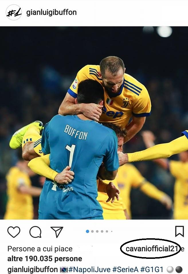 Perché il Matador si è lasciato andare ad un “cuoricino” galeotto su Instagram… al post di Gigi Buffon che celebrava la vittoria della Juve contro il Napoli.