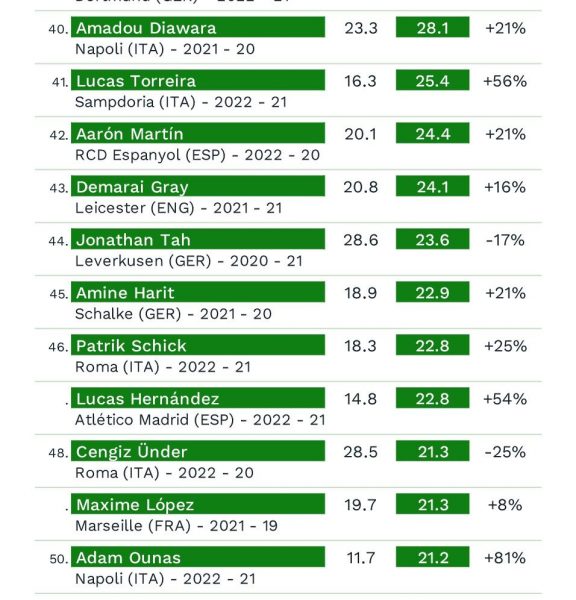 A confermarlo è il CIES, inserendo nella top 100 degli Under 21 più costosi al mondo Amadou Diawara (40esimo con un valore di 28.1 milioni di euro) e Adam Ounas (50esimo con un valore del cartellino di 21.2 milioni di euro). Complessivamente il valore dei due azzurri è cresciuto del 21% per Diawara, pagato circa 15 milioni la scorsa estate, e addirittura dell 81% per Ounas pagato 11.7 milioni nell’ultima campagna acquisti.